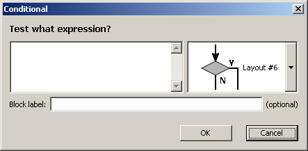 The text control at the bottom of the dialog lets you enter an optional label for the block. Labels are handy to clarify what the block is doing or to simplify the flowchart display when a complex expression is involved. This label affects only the flowchart display, and not the program's operation.