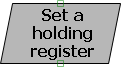 When your program runs, execution will "enter" into the block from the socket at the top, then the holding register will be set as per your configuration, and then execution will "exit" out the socket at the bottom of the block.