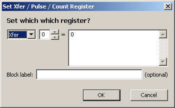 Holding register blocks allow you to set the value of three different categories of holding register; Xfer, Pulse, and Count registers. Each holding register block can set one holding register to a given value.