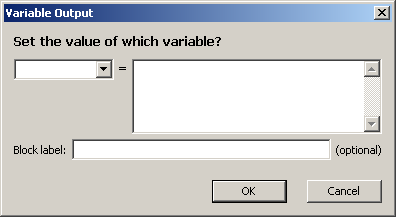 The combo-box control in the dialog's upper-left selects the variable name to be set. You can enter a new variable name in from the keyboard or select a previously-defined variable from the drop-down portion of the control. Variables may be named any combination of letters, digits, and the underscore character ("_"), provided that the first character is not a digit.