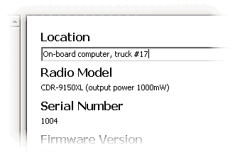 The text control lets you enter any text that will help differentiate this radio from the others you deploy. For stationary radios, we recommend a short description of where the radio is located. For mobile radios, you might track what device will be attached to the radio or what equipment will have the radio installed in it.