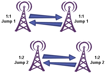 In some systems, radios are used in pairs to connect units that need to communicate, but are not located near each other. In such cases, unit A1 only needs to communicate with unit B1, A2 with B2, etc.